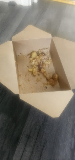 I couldn't eat my meal, so I asked for a doggie back to take the food home for my dog. Before putting the food in the doggie bag, I cut everything up to help soak up the watery gravy.