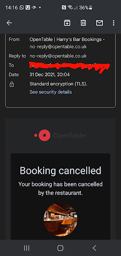 Below is a screenshot of the email I received cancelling the booking.