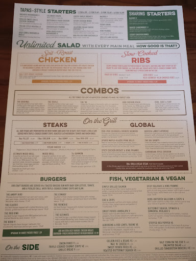 Read moreWow... Won't be in a rush to go back here. How disappointing as years ago food was superb here. Firstly we expected it to be busy as we went here for father's day. A group of just 3 adults and 2 children. We first got escorted to a large table which was promising but table was still dirty, chairs had food on it and food around the table on the floor. We soon gave our waiter the name of Mr. Happy... Clearly didn't want to be there! We sat down to which the fathers day menu not offered to us, no drinks menu - drinks ordered which took around 20 mins to arrive then food order was taken. Food took an hour and 15 mins to come out (just ordered mains). My order was the ultimate grill, steak was a bit tough, chicken was barely warm and very dry so that tells me it was cooked prior to my order and reheated. One of the eggs was broken and dripping down our waiters shirt as he placed (almost dropped) onto the table. Ribs very dry and a poor attempt to cover it up by covering in BBQ dip, sausages burnt. Massively disappointed with the children's food, broccoli was well.... Hardly broccoli (see photos). Kitchen need to learn how to do cheesy garlic bread. Bread not toasted and the cheese, yep you guessed it... Burnt! Ice creams came out very quick from ordering but looked such a mess and unorganised that I reckon my 6 year old could of done better on presentation skills. Bill came in at around £96 after after waiting so long for the waiter to come back we opted to pay via the app. All in all was there for a complete unnecessary 2 hours and 45mins. Honestly I don't think I will be returning back here any time soon. Parking free on Sundays and Monday to Saturday you can claim the ticket off your bill but you might be better off going...