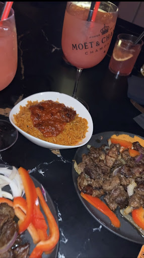 Now to the service and food, it wasn't really what my friends and I were expecting, the menu was very vague, not much to choose from, but the prices of the food, were very expensive for the amount you'll get served. To be honest it's not worth the price, plus it wasn't to my liking either, as the lamb I received was very bland and flavourless and the jollof really soft and salty, I couldn't eat it. The service was really slow as far as I noticed there were only 2 servers serving for the whole place, which took the orders way longer then it should have been. And for them to include service charges to your bill, this should be optional, as the service was not to my standard, we shouldn't be forced to pay this charge if the service you get is not there. For common ketchup request we had asked someone twice with them ignoring us until we asked another server, who was friendly and served us the ketchup right away. The drink menu looks very posh, however, again not much of variation, aswell the price is a bit pricy. And certain cocktails i wanted werent available that evening, which was disappointing. I also told our server all the points mentioned above and that I was very unhappy having to pay for service charge when I didn't receive the service I should have gotten.