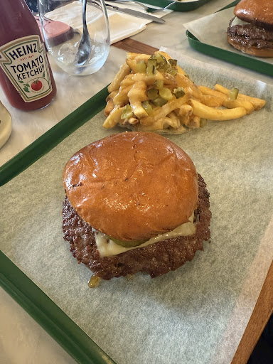 We'd seen this place on weekend television and as smash burgers are my favourite and Borough is not far from home we dropped by on Tuesday last week. On arrival the restaurant looked very nice immediately, but as we were shown to our table, I noticed a large amount of plated food just sitting under the lights at the pass. I was also struck at how small the burgers looked. This sadly set the tone. Our pleasant waiter came over quickly to take our order. I ordered a Smokestack burger and my husband had the Heard signature burger. We both ordered fries topped with cheese and pickles and one salad. Our drinks came quickly and they were very nice, however we had a 30 minute wait for our mains. When our mains arrived, my husbands burger was as ordered but mine was the wrong burger with the right fries. I actually saw the waiter give my burger to the table next to us. I brought this to the attention of the waitress and she took my food away. Another wait ensued during which time my husband and I tried his cheesy chips. These had clearly been left on the pass for some time as the cheese had congealed into a quite unpleasant sticky mass. The pickle topping was lovely, but the lukewarm potato and cheese mass was claggy and rather unpleasant to eat. Eventually the waitress brought my Smokestack burger, with the right fries and my salad. The salad was fresh, appealing to the eye and was covered in a very nice dressing. However no cutlery or napkins were provided to enable me to eat the dressing soaked salad, so again we had to call the waitress. By this time I was really hungry, having not had any lunch. I went straight to the fries and once again, as was the case with my husbands they were tepid and congealed. Excited to try the smash burger I had seen touted on television I eagerly tucked into my burger and what a disaster that was; the burger was nearly cold, there was no char on the patties and they were dry as old leather. Amy half decent smash burger needs to have a decent char and to be running with juice. This burger was nearly cold, tough and dry. The potato bun was also dry and crumbling. I ploughed on because by this point I was really hungry but I didn't enjoy the burger or fries at all. Really disappointing. Maybe they were having a bad night but the place wasn't completely full and despite the issues with orders and quality control I actually watched two people that I took to be the owners leave the premises and go over to road to another venue at one point. The only enjoyable aspects of the meal were the space itself, the lager and the highlight was a salad, which I had to start eating with my fingers in lieu of cutlery. The menu only really offers fries and burgers, so surely if these are the quality signature dishes being touted on national television they should be perfected and consistent. As it stands I've had higher quality and tastier burgers from high street burger chains than this place. I would add that due to the delay and mix up with the order they deducted the price of one burger, one fries and a salad. Frankly I would only have paid for the drinks and the salad. It says something when the only well prepared dish in your not cheap burger joint is a small, but tasty green salad. Hugely disappointed. Step up...