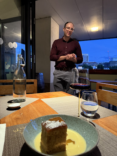 Dessert of orange trifle wasn't a trifle, more a small, neat but over-set flavourless jelly with some meringue dust on the side. Deeply unimpressed with that.