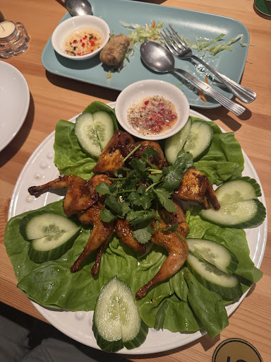 The chicken satay starter is still one of the best that I have ever eaten. Really good satay sauce. The fried pancake starter was also truly excellent. The main course fish was so overcooked that it was dry. The morning glory looked massively overcooked before I confirmed by tasting it. There was very little duck in that main course dish and it was really fatty. The fat was completely unrendered.