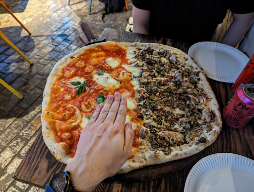 Upon doing so, we were informed that one of our desired pizza types was sold out "just 2 minutes earlier". This felt like we may have received our first choice of toppings had they come sooner. We did receive a discount of £2.50 from the total amount, but it may have been an adjustment to reflect the half and half toppings we ultimately chose - mushroom and margherita.