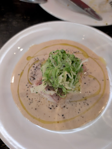 We found a large menu with every plate expertly paired with a delicious glass of wine. You can also order bottles if you prefer, but if you like a well curated ‘adventure’, I recommend having a different glass with each plate. I’m probably a bit set in my ways, so I really enjoyed being nudged into new experiences.