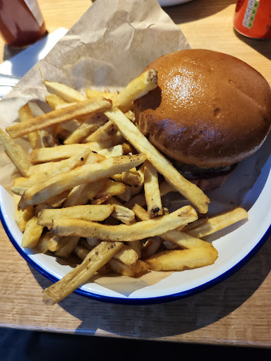 "Long review" The meat quality was great, sadly missed with seasoning of the meat, felt like the cheese didnt have much purpose with the bland taste, but it was not terrible. Burger was 3/5. One thing that also drove down the grade was that they drenched my burger in fat, so i was forced to eat it with a fork and knife. "Moist" might be the word.
