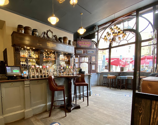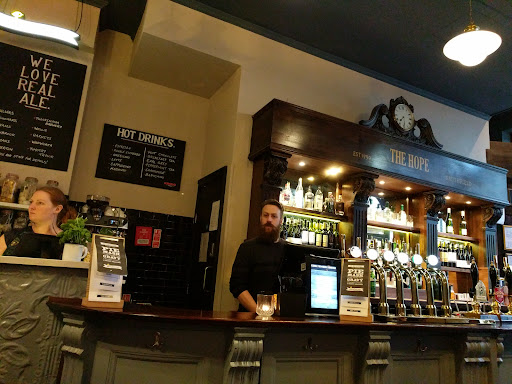 Roughly 7pm my partner and I were told we could go upstairs by the manager of the hope as there were no seats downstairs or outside. Upstairs was pretty empty with the 3 other people there leaving within 10mins. The bar man upstairs proceeded to tell my partner and I that he had no time for people who drank wine with a glass of water and along with a few other similar remarks made us feel uncomfortable. I told him he was being rude as we had been offered to go upstairs to this now empty bar with our bottle of wine and some water. He changed his tune saying he wasn't being rude and that the difference was we had a bottle.......the barman has partially dreaded hair and is white. We were made to feel very...