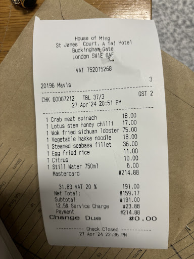 Siddhesh and the rest of the staff at House of Ming orchestrated flawless service, ensuring our dining experience was one of pure indulgence. Attentive and warm, they made us feel like honoured guests, adding an extra layer of delight to the evening.