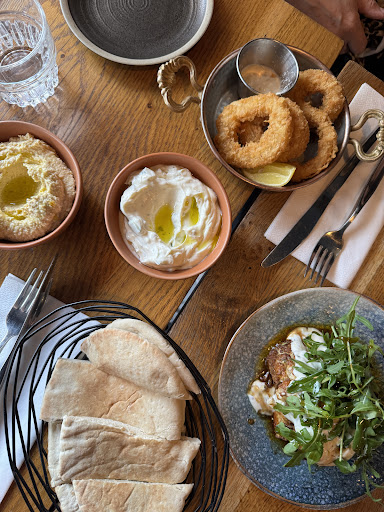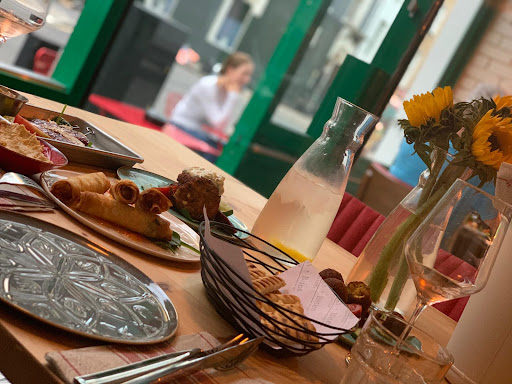 Honestly what a fantastic little find. For central London the prices are more than reasonable. I would say this place is exceptional value for money. The staff were super friendly and also very informative offering recommendations for the wine and for the menu. We were just looking for a quick bite and didn’t have any expectations for this new place. However we were blown away by the food, wine and hospitality. The environment was very relaxed and welcoming. We sat for hours talking over tapas and wine. The wine was £19.50 a bottle. They even let us sample the wine as we couldn’t choose between the two roses and actually the cheaper bottle was elegantly crisp and delightful. We thoroughly enjoyed it. The tap water was perfectly iced with a slice of lemon. Usually a bottle of still or sparkling is forced upon you but I really liked they way in which they prepared the tap water. Lots of ice and lemon. Usually in London staff with look at you square if you even suggest tap water. They had fresh sunflowers on the table complimenting the Very soft Mediterranean decor. For food I opted for the garlic sausages with cheese! Wow ... falafel, hummus, burraka and zucchini fritter. All of it was mouth watering. We’ll be back for sure. I would say however the dessert Menu didn’t have any chocolate on. My only Criticism, however there were lots of other tasty...