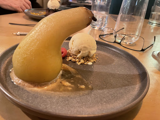 Puddings were ok. Poached pear was hilarious (see photo) but didn’t taste of much tbh, rest were ok but not great.