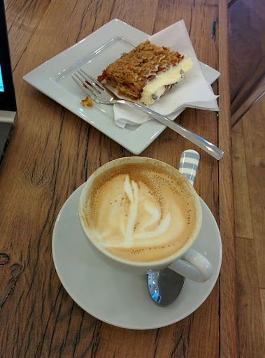 First impressions walking in: Friendly, brightly lit and snug coffee shop I went in on a Thursday afternoon when it was not busy unfortunately I experienced extremely slow service, I realised later that the sole barista was bang in the middle of serving a large take away order for a waiting customer. Looking around there were the usual suspects of pastries, cakes and beverages on offer. I ordered a flat white and a slice of carrot cake. Their Wi-Fi was agonisingly slow Wi-Fi which made my wait drag on and felt even longer :( I thought to myself"Well if it's good coffee and cake then it'll have been worth it". Unfortunately when it finally arrived my flat white tasted passable and not worth the 15+ min wait. It lacked any sort of depth and tasted weak, not helped by the excessive foam on top. The carrot cake however was delicious, lovely and moist. The creamy cheese topping added extra indulgent with an unexpected crunch coming from the pumpkin seeds on top. The thin slice portion was on the stingy side. Certainly 56 James Street, Wynwood and the other E17 independent coffee shops are far more generous. Fortunately the barista DID acknowledge AND apologised for the wait. She had a problem with the equipment on top of everything. Something about getting the levels right. Before I left she asked if my coffee was too strong and I gave her my view as I have stated above. Overall had high hopes for this place, especially looking from the outside in as it looks the part. Today I was left feeling disappointed. However she asked me to come back and I'd like to give incoming another chance in case this was a one off. I'll make sure there's a different barista on coffee duty though. I love seeing more places like this in Walthamstow and I...