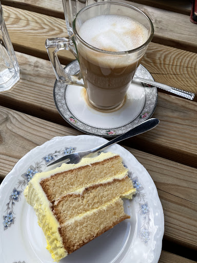 Read moreCame across this little gem whilst out on a walk. I'm not familiar with the area so we didn't know where to get a coffee. The venue was clean, and inviting. The staff were really lovely too. The cakes were lively and it was nice to know they are made by local bakers and not commercially sourced. I had the pistachio and rose cake. Huge piece of cake and tasted divine. Not too sweet, nicely flavoured and a bargain price. The lovely lady at the counter mentioned vegan cinnamon buns. She said next time we come to call up to check if we have any. Definitely plan...