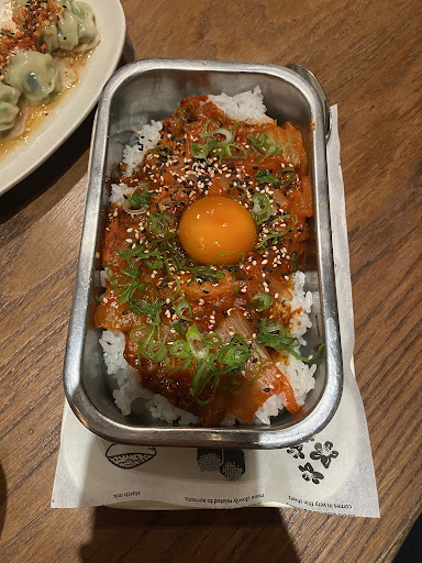 Read moreThis place has an amazing wibe. Modern take on Japanese cuisine. We had absolutely delicious selection of starters. Simple sounding kimchi rice, massive portion of sticky rice with a bit spicy pickled cabbage and egg yolk. Simple but very tasty. Then we had beef wrapped in some pastry and topped with black truffle. Very small dish, quite pricey but worth of every penny. And we tried steamed dumplings in yuzu sauce. This was so nice that usual using soy sauce was my unnecessary. For main I had ox cheek with spicy sauce and lettuce leaf wraps. Such a simple idea but it works so well. I only wish they gave us more leafs. But I am sure if I asked they would give me more. Beef was so soft it was falling apart. So yummy! Mistake was ordering lamb rump. It was very greasy. Not for everyone. But service had not a smallest problem to take the dish off our bill. As a pudding we had chocolate frozen bar. Oh my stars… that was so good. Massive portion, smooth, not too sweet with side sauce complementing chocolate soooo well. Yes, please! Service in general was very good. Polite all the way through. Swift, smiling, knowing the menu and very professional. Only thing I would say in bad, they are maybe too fast. I felt a little bit pushed. Plates were taken off my table before I managed to put my fork down. This was the only minus point of the whole experience. Finally I had a can of non alcoholic beer which was the best non alcoholic beer I have every tasted in my life! And I...