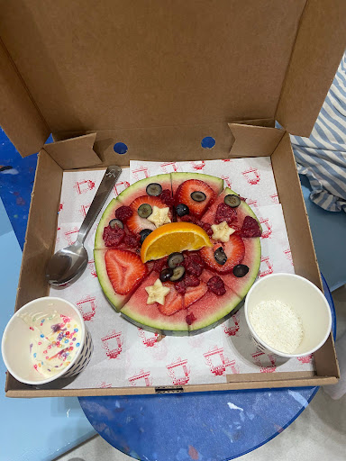 The food was another highlight. There was a great variety of hearty party food that was both kid- and parent-approved, especially the watermelon “pizza” 🍉 served in a real pizza box such a fun and healthy twist that had everyone smiling!