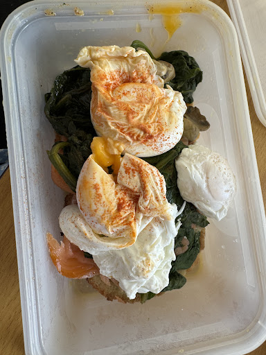 Omelette and Toast: The omelette was overcooked, rubbery, and simply unappetizing. The toast was cold and stale, clearly not fresh. The entire dish was a soggy mess, with the cheese inside the omelette seeping out and sticking to the container. It was impossible to even consider eating it.
