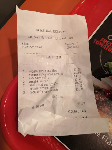 Ā Ā Ā Read moreI recently dined at the Itsu in The Glades, Bromley, and was thoroughly impressed. The food quality was excellent ā fresh, flavorful, and healthy options abound. However, what truly set this experience apart was the exceptional service provided by Yoyo. She was incredibly energetic and maintained a constant smile throughout my visit. Yoyo went above and beyond, assisting me with the electronic menu, offering helpful food selections, and ensuring a clean and welcoming environment. She was constantly moving, cleaning tables, welcoming customers, serving at the counter, and even emptying bins. Her attentiveness and hard work were truly commendable. I highly recommend this Itsu location, particularly for the outstanding service...
