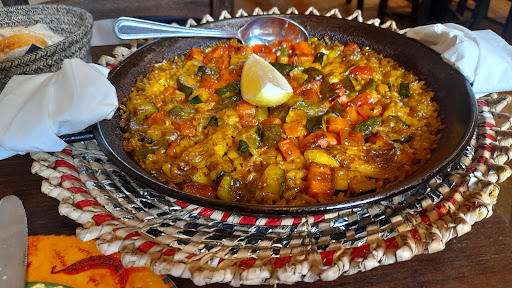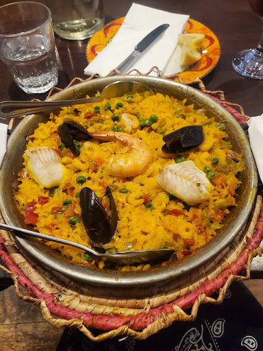 The interior exudes a rustic charm, adorned with traditional elements that transport diners to the streets of Spain. The warm and welcoming ambiance sets the stage for an immersive dining experience. From the moment you step inside, you're greeted with the aroma of sizzling chorizo and the sight of expert chefs crafting tapas and paellas.