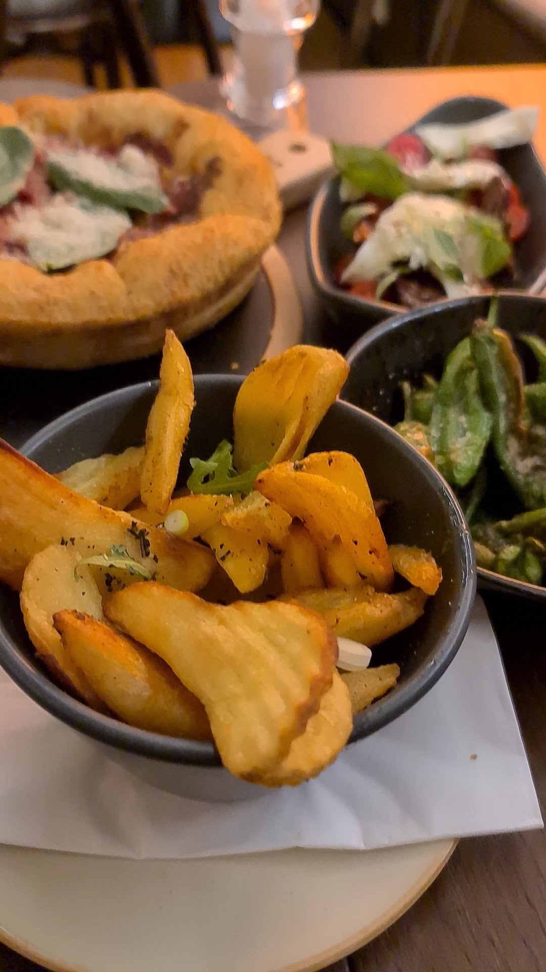 The Food 8.5/10 - Everything was really good and we really enjoyed every dish. Pizza itself was really nice. One of those dishes when you just know all of the ingredients are good quality. The salad was tasty and the chip/fries/wedges things we're great, never had them before but they were 👍🏼