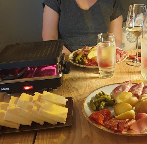First visit, and it seems like a really nice place. Firstly, staff were great, very friendly and attentive. Loved the staff. Wine by the glass was really nice, we had the Bulgarian red, and a really good Italian Orange. We had the combined cheese and meat platter which was nice, probably not as good value as the wine. Also a shame that three of the bits of cheese had meat draped over them, but I guess we could have asked for that not to have happened in advance. Maybe not a unique situation for a meat eater and vegetarian ordering one of these platters though? The problem with this evening though, and it was a big issue, was the table we were put at. It was at the back of the bar, completely separate from the main part of the bar, and directly in front of the kitchen. That area, with just two tables, had a completely different, and reduced, atmosphere to the main part of the bar. The door of the kitchen, which our table was about four feet from, and which for some reason couldn't be closed, had to be propped open with a gallon bottle of olive oil, which meant the blazing lights from the kitchen were in our eyes for pretty much the entire evening. Unless we'd decided to sit side by side at the round table, facing the other way, there was no option to negate this. That kind of detracted from the otherwise low level 'wine bar' type lighting of the rest of the space. The staff really were very lovely, but I don't think we'll take the chance of going back and being put in the outback again....
