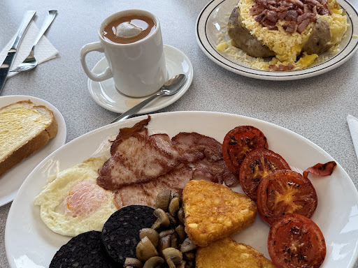 An excellent little greasy spoon café. Went in for a breakfast with my daughter. Price's are very reasonable for the area. A good breakfast menu selection and other meals too. The seating area is a bit small, but space on the area is at a premium. It is very popular with builders in the area, and was really busy, great thing to see, as parking isn't easy outside. Breakfast was served quickly, nice clean plates and cutlery, staff were really cheerful and friendly, and efficient. As soon as one table of people left, it was cleaned thoroughly and ready for the next set of customers. Highly recommended for a...