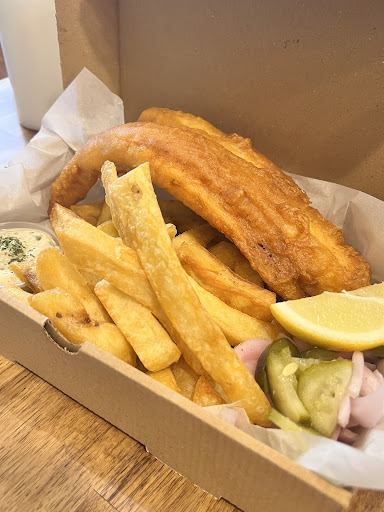 The star of the show is, of course, the fish and chips. The fish is consistently fresh, with a light, golden batter that’s perfectly crispy on the outside while keeping the fish moist and flaky inside. Whether you go for cod, haddock, or another option, you can expect quality. The chips are thick-cut, hot, and fluffy on the inside, just as they should be. Portions are generous, so you definitely get your money’s worth.