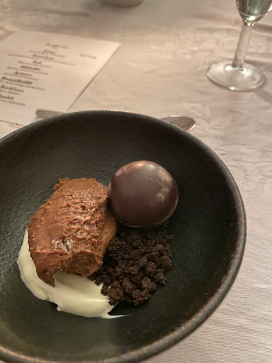 His squid ink sourdough, burnt butter and pork cracking is just, well, wow!! Those combinations together just explode and collide in your mouth and I could not get enough. In fact, had that been the only thing I ate that evening, I would still have been a very happy woman! Saying this, I was very grateful for the Venison shoulder with parsnip purée with red wine and chocolate sauce (I believe!) It melted in the mouth, so so beautifully cooked. In fact, my mouth is watering again whilst writing this! And the Winter Orange Tart, I’m afraid I’m just not eloquent enough to describe fully what I’m trying to describe. So I’ll say again,...