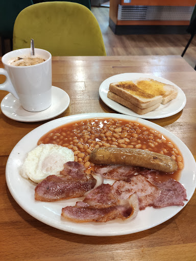 Read more£6.90 for a small breakfast (pictured) consisting of bacon, egg, sausage, beans, toast, and coffee or tea. While not overwhelmingly pricey, you'll be better served by ordering the components you desire individually if you don't fancy bacon (e.g. egg, sausage, bubble, beans, and coffee cost ~£5.90). Quality of the food was above average, but the toast was soggier than desired. Venue-wise, the seats are comfortable, the tables are clean, and the atmosphere casual...