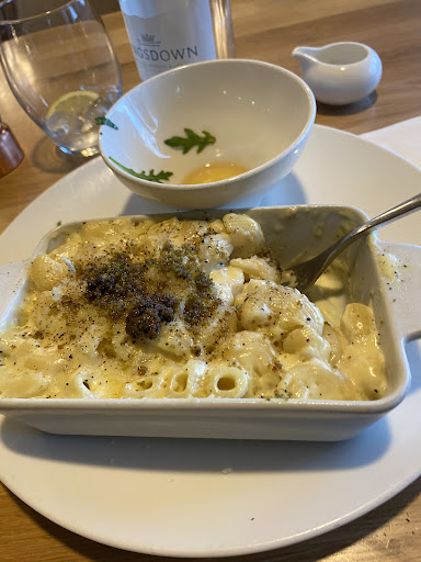 Read moreJuniper & Co dedicates half a page on its menu to telling its diners about the cheeses it uses from local suppliers. Sad then that the truffle Mac and ‘cheese’ tastes as though the macaroni has been dipped in the blandest béchamel. Either the Sussex Charmer that they claim is used is extremely insipid, or they left it out the day I came, or they used it in such minuscule quantities that it made no difference. Someone should taste the stuff they are serving. Mac and cheese should taste of cheese! Fault lies with recipe design rather than kitchen, I think. One of us ordered the cheese platter where they did manage to put some cheese! Waiting staff didn’t know which cheese was which, though, and I was initially told one was goat which turned out to be cow. Of course, there is a world in which none of this matters, but if you pretend to care on the menu then you should at least follow through by training your staff properly, particularly as the cheese suppliers may be hoping to present British cheeses in a positive light. Service was haphazard - was left waiting for half an hour after mains were cleared before the dessert menu was offered. Not great when you’re trying to catch a plane. Bottled sparkling water fine and so was cheese plate, so extra...