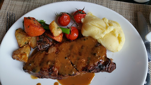 The food was almost as good as it sounds. The steak came medium rare as recommended by my waiter and tasted great. The peppercorn sauce was a bit of a let down, for me it could have had a stronger pepper kick to it. It was not bad, but a little bit bland for a peppercorn sauce.
