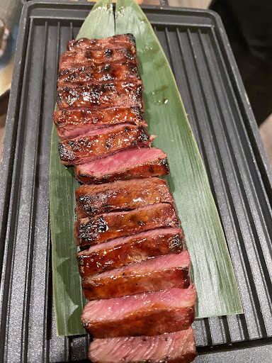 Read moreThere are some real positives about this restaurant, and some comments/suggestions. Let's start with the positives. The menu included lots of choice plus there is a special lunch deal on certain days. The food was totally tasty! Between us we tried the edamame beans with the sesame smoked salt, a selection of dim sum, spinach and kale salad, chicken yakitori skewers, katsu curry, vegetable bi-bim-bap rice bowl and two sirloin steaks. We shared a bottle of white wine. Everything was scrumptious. The rice was a real hit! The big disappointment was the steaks. For the price of £32.50 each we were expecting practically half a cow. Instead these very small steaks turned up. And that price does not include any sides, it's just for the steak. So, £65 for two very moderately sized steaks, definitely will not be ordering those again. Another negative was the fact that neither of the two staff wore masks at any time during our visit. Also, they were the only two people serving and, seeing as it was quite busy, the service took a really long time. This also meant that we received our dishes at different times and therefore couldn't all eat together. So, in conclusion, delicious food, nice place with big tables and lots of space, but no Covid safety and a final bill over...