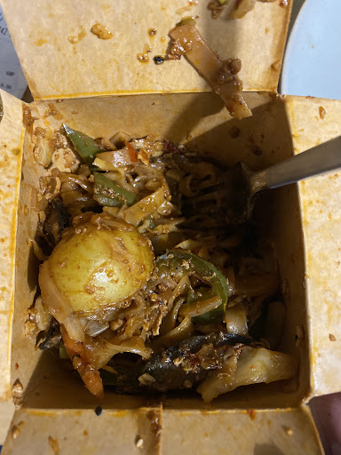 āPad thaiā unfortunately was the worst weāve had. There was no chicken at all, no peanuts and no spring onions - instead it was filled with some very odd veg (including potatoes!?) . Tried to power through but unfortunately did not taste great and left most of it tasted incredibly bitter. Only connection to pad Thai seemed to be flat noodles.
