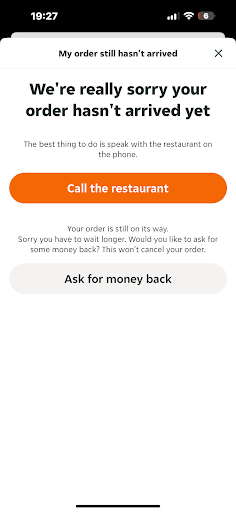 Read moreOrdered through just eat. The food hasn’t arrived by delivery time so I called the restaurant they just kept telling me he had left, 25 minutes later nothing so I called back he said the same thing and that he would call back in 2 minutes, he didn’t. I called back and said I want to cancel because the driver left almost an hour ago and said my food will be cold he said check it, I said I will and if it is I won’t accept. The driver arrived and told me he had left 50 minutes earlier with my food ( it’s a 5 minute drive 10 at max) I handed back the food and said I want a refund. I didn’t give the driver the number he needed which is my proof I didn’t accept the food as I know the restaurant will say I did accept. They even had the cheek to send me a text after I requested some money back through just eat for being late by saying they won’t give me anything back and they added something for free.. well how could they when the driver had left almost an hour previously. Almost 2 hours after I ordered and I couldn’t take the food. Will defo not be...
