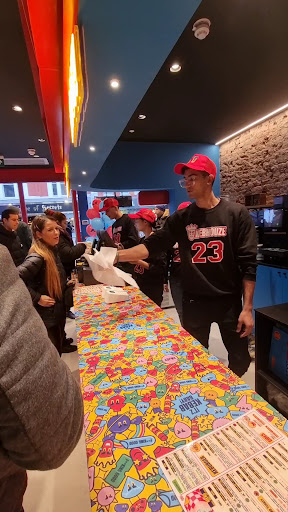 The interior ambiance was nothing short of lively and inviting, with the rhythmic hum of the food preparation machinery adding to the excitement. It was a joy to witness the culinary creations coming to life before my eyes, amidst a backdrop of bustling activity and lively conversations.