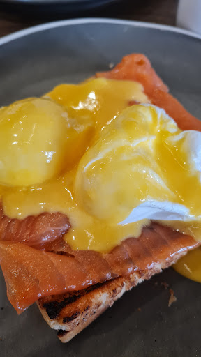 I hate to write this, but the breakfast tasted like nothing. Considering the price, it was such a shame. I'll definitely not come back. I had the Eggs Royale. The smoked salmon was the mildest I've ever had, and I'm a seafood lover. I know smoked salmon as something salty. This one wasn't at all (which is ok maybe?). But the salmon was the least of the "problem." It could have worked out fine if the rest wasn't the way it was. The sauce on top tasted like absolutely nothing and had no salt at all. I don't mean that it could have benefitted from more salt. I genuinely mean that it had NO salt at all. It also didn't have any other taste, really. They had not used any seasoning. There were no efforts to give this breakfast any sort of taste at all. I even felt reminded of how it felt like when I had Covid and how I could not taste my food. But today, I was perfectly healthy. I let the person who I was with taste it too, and they agreed with me. It was so weird. We didn't have time for sending this back to the kitchen, and I was really hungry, so I took a few bites just to feel not hungry and left the rest on the plate. There is nothing royal about this breakfast, I'm afraid and considering that I eat out a lot, this was such a surprise. I've probably never had anything with such little flavour. I used lots of salt to fix most of it, but a dish needs to be seasoned (a) while it is cooking so that the flavours can develop and (b) more than with salt only. They should also consider to use better ingredients. A good egg and a great bread alone can have wonderful rich flavours if they have a good quality. Those wouldn't even need any seasoning at all to give more than I had this morning. But buy the cheapest egg and the plainest of plain toast...well, you'll taste what I had today. I get when people have dietary requirements and ask for no seasoning. But it wasn't the case with us. And it is such a shame as the atmosphere looked so inviting. The toast could have maybe benefitted from being buttered or something. It just did not taste like anything (I'm almost speechless about how this was even possible). The English Breakfast tea was also not the best. At a place like this with the prices they ask for, they should offer more fragrant tea and flavourful food. I tried the hash from the person I came with (apparently the "spicy hash" or something). It also didn't have any seasoning (at least I could not taste them). We had a bill between 40-50£ for a zero taste breakfast. Such a disappointing experience. The interior is very inviting. The service was half and half.