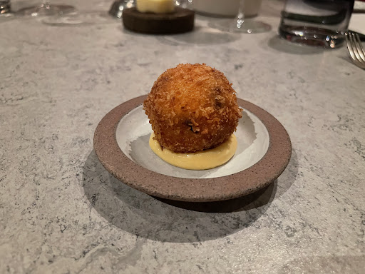 Dinner at Kerridge Bar and Grill is an evening that felt like stepping into someoneâs well considered vision of what a great venue should be. I dug the decor, the lighting and the welcoming staff and clinking of fine glass. After we ordered we got a little gift of a ham and cheese croquette with a delicious light mustard sauce. I knew we were in safe hands.