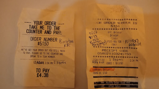 NOTE: Telephoning her mgr (Asif) to give my compliments, I discovered that the number on the receipt is for the Ashford branch. Googling I found the Brixton branch telephone number to learn that Head Office puts the telephone numbers. If Head Office is reading this review, they can see the proof in my evidence pic and possibly amend to the correct...