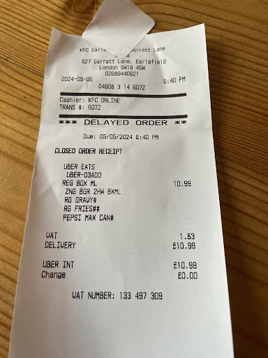 I am disgusted by the treatment I received just now This was my first AND last visit I ordered my food as anyone would........the order was NOT repeated back to me so I had to read the order from the screen to correct ALL of the mistakes that was made. I made it quite clear that I was stepping outside to finish my cigarette and send a message. While doing this I almost got knocked over by some random guy..........when I returned to the counter it became clear that he, and half of the queue was 'delivery' drivers who, with respect have no manners or corporate wear for me to easily identify who is a legitimate delivery man or someone who is taking liberties and 'jumping the queue' This is not a complaint about Deliveroo or any type of of delivery driver, I know you guys are really working hard