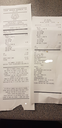 Read moreThe food is delicious like today I ordered two mighty buckets for one and asked the lady serving me if the chicken pieces can be all thighs which she put on the receipt. I then said I have a free snack on the KFC app so I asked her for a hot wings snack box. I scanned the barcode paid and waited for my order. Then I collected my order and went home but when I got home and put my food on plate I could see they my order wrong. They had given both myself and my wife a leg and a side breast instead of the thighs I asked for and to anger me further they charged me for the hot wings snack box. This has happened to me a couple times before and I shrugged it off but it just seems to keep happening. So I don't know if anyone from KFC will see this but something needs to be done about this and some form of compensation should be actioned. Had this not happened I would give...
