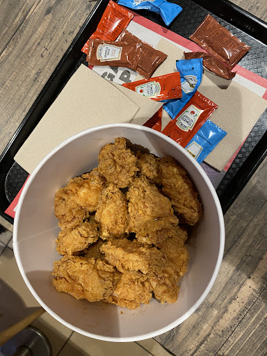 We visited wed late dinner time. Not busy! Restaurant was clean and quiet. We ordered hot wings bucket one friendly gentleman staff said wait 3min. And he brought for us table with lots of sources.👍👍 and the hot wings absolutely great crispy and just right taste of spicy 🤭🤭but expect one gentleman staff others are not really friendly. Maybe they are too tired 🥱