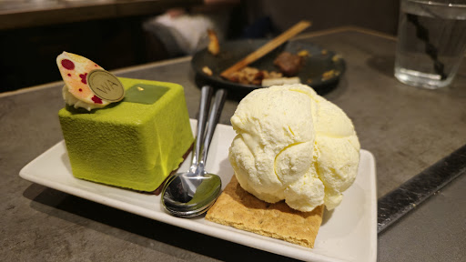 The meal ended on a high note with the Green Tea Tiramisu, a delightful fusion dessert that proved to be a refreshing change of pace. This light and fresh creation beautifully showcased the sweet, grassy taste and aroma that matcha is known for. The vanilla ice cream, speckled with real vanilla, complemented the matcha perfectly and added to the overall lightness of the dish. While the Graham cracker provided an interesting textural contrast, it didn't feel entirely necessary to the dessert's success.