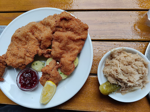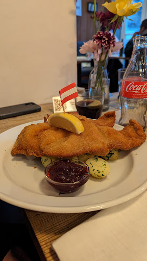 The menu was extensive and featured a variety of Austrian dishes, but I had my heart set on the schnitzel. When my order arrived, I was immediately impressed with the presentation. The schnitzel was crispy and golden brown on the outside, while the inside was tender and flavorful. It was accompanied by a generous serving of potato and lingonberry jam, which added a perfect balance of sweetness to the dish.