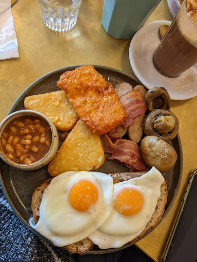 The food was really nice but indulgent. I ordered the Korean Buttermilk Chicken Waffle because the pictures on Instagram looked amazing and I had heard good things about this dish - it was absolutely massive and very visually appealing! The price seems expensive but actually I thought it was decent for brunch in London and the portions we were served. The chicken was very sticky and sweet which had a great combo with the waffles. My partner ordered the brunch fry up dish and enjoyed it - the halloumi and hash browns were very tasty. Both our dishes were quite big portion sizes so if we were to come back we probably would have 1 to share between the two of us.
