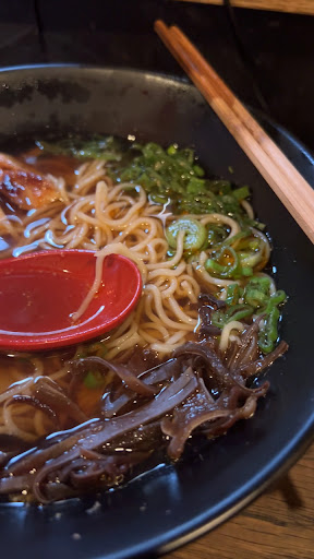 The ramen arrives with noodles and soup NOT separated meaning the noodles had soaked up a lot of the soup, resulting in gross mushy noodles and not enough liquid soup. It completely ruined what would have been a tasty meal.