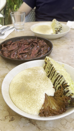 Could we have asked to move tables? Yes. Did we have to follow the suggestion of 2 dishes per category? No. But when it's your first time at a place, you sort of trust the staff to have your best interest, and I would expect a place that charged me £100 for food and £1 for tap water, and with waiters seeing us battle with the flies multiple times, to perhaps have cared a little more about our experience, e.g. offer to move us inside or be transparent about costs on their website. Overall, didn't have a great experience given the price we paid and would be...