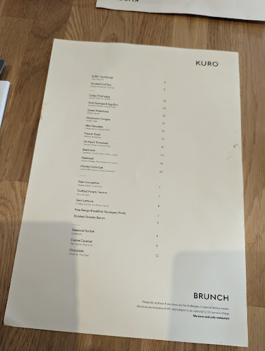 Read moreUnbelievably poor experiences. The first time (a couple of months ago or so) the food was nice enough, however the owner/manager ruined the experience. He was extremely loud, shouting across the restaurant, giving orders to his staff (yes, orders!) and facetiming someone very loudly showing the place. He was also shouting about having taken mushrooms and being high, and this was before he started dancing all over the restaurant with his friends…. And the music playing was very loud pop (Lady gaga, Dua Lipa etc) which definitely didn’t fit the style of the restaurant. A couple of weeks ago we decided to give Kuro another chance as we enjoyed the food the first time we went there. Firstly we saw the chef outside smoking in his chefs white (!!!), quite off-putting. Despite that, everything was going ok until we saw a server bringing a prawn dish to another table. The dish had like a crispy seaweed thing on top, which fell on floor. The owner/manager (yes, unfortunately he was there again, always super loud and unaware of the vibe) picked it up from the floor and put it back on the plate!!!! We obviously just paid and left. Unbelievable really. And then yesterday Kuro was mentioned in a Topjaw video, Kuro copied MARU COFFEE in LA in absolutely everything - Google it, you’ll be shocked!! Seeing the responses they’re giving I’m sure they’ll answer saying that I’m lying or they will judge my “review pattern” - so...