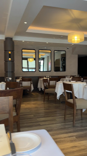 The space is well-structured, with a substantial number of tables for two, mirrors enhancing the sense of space, and a bar at the far end. Some outdoor seating is available for those who prefer al fresco dining.