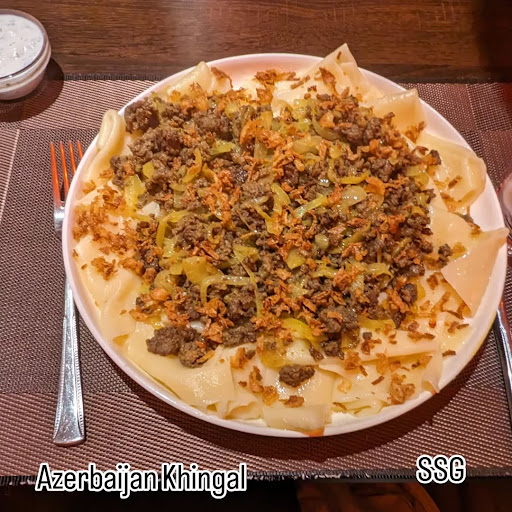 Read moreTrying Azerbaijan cuisine. It's not a cuisine I often bump into hence dined there. Studying the menu, there were things from different cuisines like plov from Uyghur, Georgian khinkali, Russian pelmeni and Persian lamb stew rice. There were other interesting things like testicle skewers. I got the Khingal which was something new to me, it is basically large square/triangle sheets of dough (pasta) similar to Stracci topped with meat and onions with a choice of chicken or beef. I believe chicken is probably nicer but I got beef thinking it would be more flavourful. The dish is quite dry, I was expecting it saucy. You do get sour cream but they don't get a long as well as dumplings. Overall, it works but you have to eat it quickly before it cools down as the sheets will stick together. To summarize, the portions are huge and expensive for something simple because this dish is just a basic dish in Azerbaijan. For those who like trying different cuisines, I would definitely recommend. Although I recommend the food, I found the service chaotic. Initially the restaurant was full, hence I ordered for takeaway, upon seeing someone leaving which the manager knew because he settled his payment, he does not tell the other staffso when another person came in, the other waitress sat...
