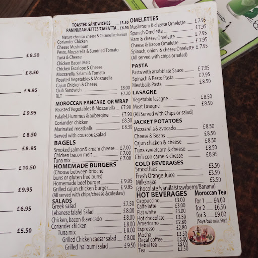 My cousin introduced me to this place several years ago when she lived in the area. Thankfully it is still there serving delicious food. Very friendly staff. We had eggs benidic beans mushrooms toast which was great.What I love about this place is that it is decorated with lovely ornaments I think from North Africa. Second it is one of the very few places (perhaps the only one)around where you can still get a fry up at 4pm..you would be hard pressed to find a place still offering that at that time . They have smoothies and real fruit juices. The food is reasonably priced. On warm days they open the doors at the front so you get nice fresh air coming in . It makes for a nice setting. When I m in the area I will eat there again. There is a tv which is sometimes on I think more for background noise. We always leave...
