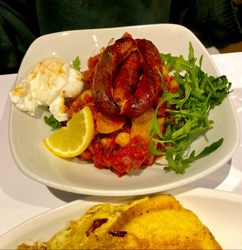 Negatives Fake bacon (turkey instead of pork) Fake sausages (beef instead of pork) Set menus that don't include toast and tea/coffee Poor design - The lights hang so low that should you be folicly challenged, you will look like an egg being incubated Inadequate heating Slow service Pricey menu Poor bathroom facilities; The hand drier looked 80 years old and sounded like it had smoked 20 fags a day No croissant at 9am; Surprised the French didn't invade us that is such sacrilege Strange decor which doesn't really work. The collection of items hanging off the walls and on display are so random, its as if a strong breeze just blew a heap of items in from the street Only one newspaper on the rack, which...