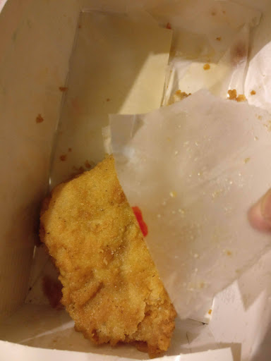 As soon as I was eating the chips and got to the wings which I ate quickly. Little did I know I found a red stain on the paper they use to prevent oil spillage onto the food box. From the looks of it, seems like blood but something like this I'm just so disappointed in. Really guys?! This is your food hygiene and a lot of people buy from this place? I've contact the food standards agency, I will also report to the...